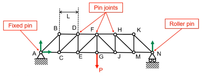 • When pin jointed trusses are loaded at the pins, the bars are subjected to pure tensile or compressive forces.