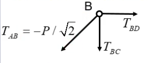 \sum F_y(B) = -\frac{-P} 2 \sin{\frac \pi 4} - T_{BC} = 0 \rightarrow