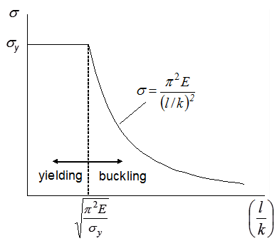 \sigma > \sigma_y, and must be modified.The critical load formulae for struts or columns are remarkable in that they do not contain any strength property of the material and yet they determine the load carrying capacity of the member. The only material property required is the elastic modulus,