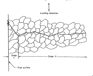- therefore cracks tend to initially grow in a plane of maximum shear stress range