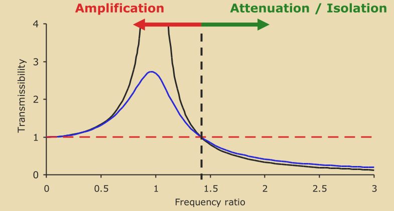 The aim when selecting isolators is to ensure that the system operates in the isolation region: