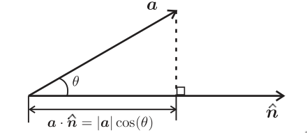 The component of a vector \pmb a in the direction of the unit vector \hat{\pmb n} is