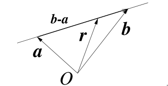 Suppose O is an origin and \pmb a, \pmb b, and \pmb r are position vectors on the line such