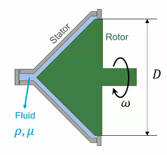 C_m = \frac{T}{\frac12 \rho \omega^2D^5} \rightarrow C_m = g(\text{Re})
