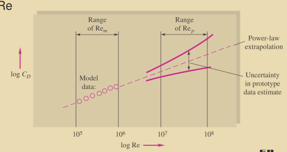 Reynolds number of the model will be smaller and the model's data will be extrapolated to the desired Reynolds number: